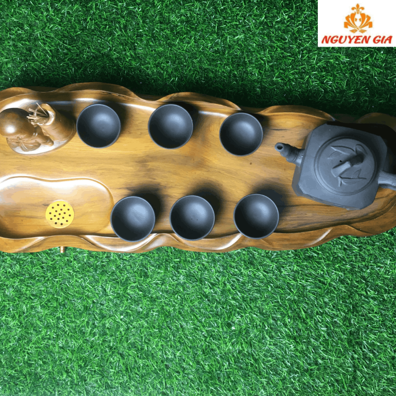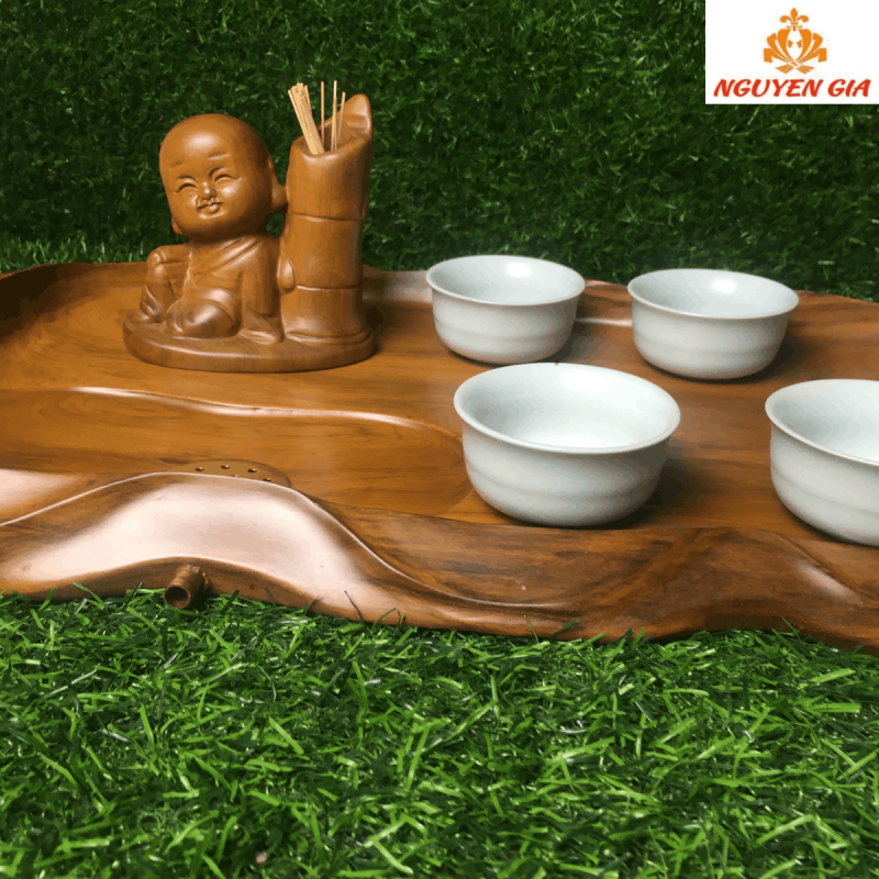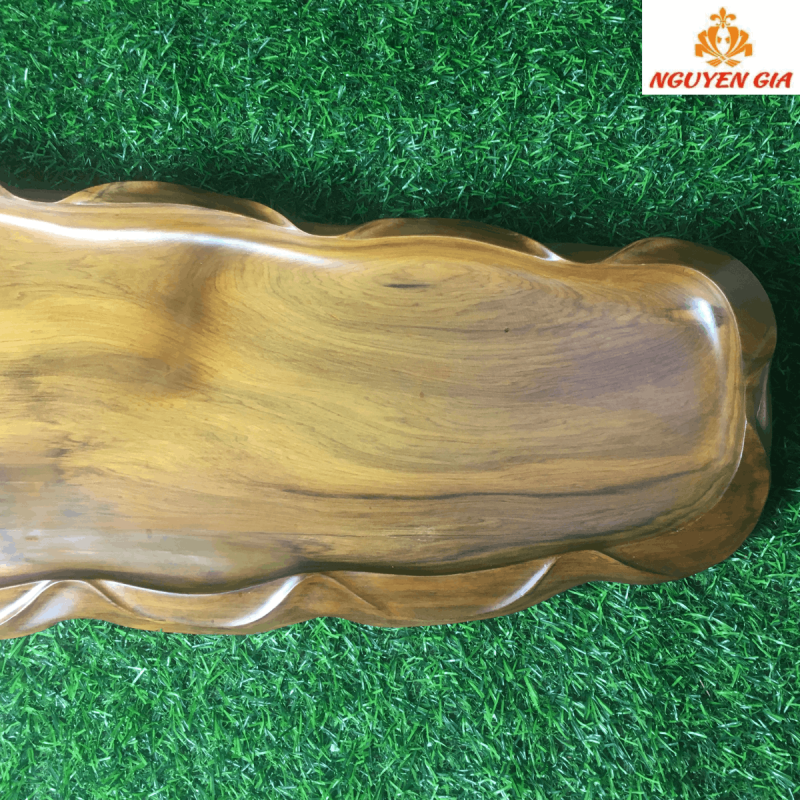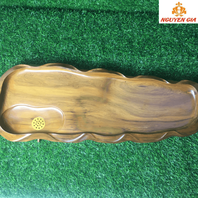 Khay trà được đục trạm thủ công dưới bàn tay tài hoa của người nghệ nhân với nhiều năm kinh nghiệm. Khay với đường vân gỗ tự nhiên đặc biệt như một bức tranh thủy mặc tạo nên nét độc đáo cho tác phẩm tạo nên sự sang trọng đẳng cấp cho không gian trưng bày.
