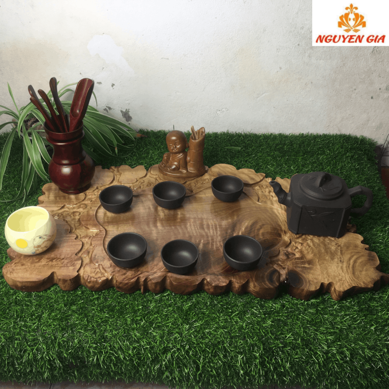 Khay Trà Gỗ Dổi Nguyên Khối 59x34cm – Bản Lớn, Vân Sống Động, Điểm Nhấn Nổi Bật