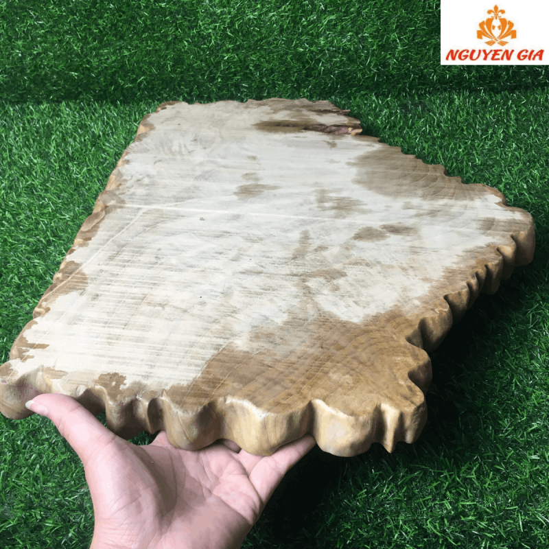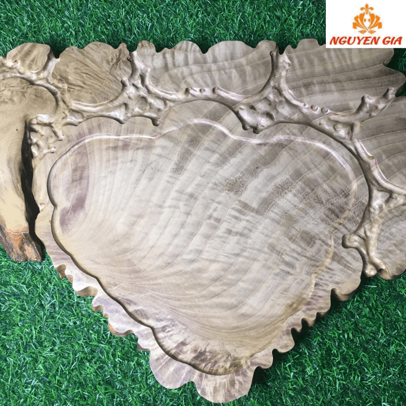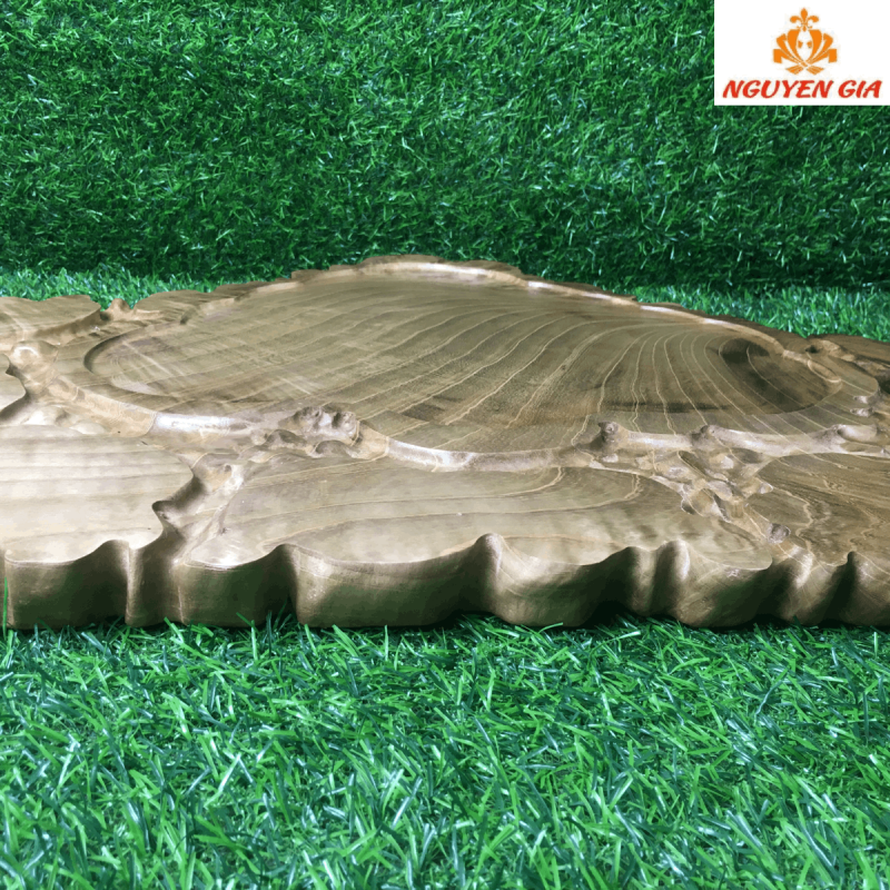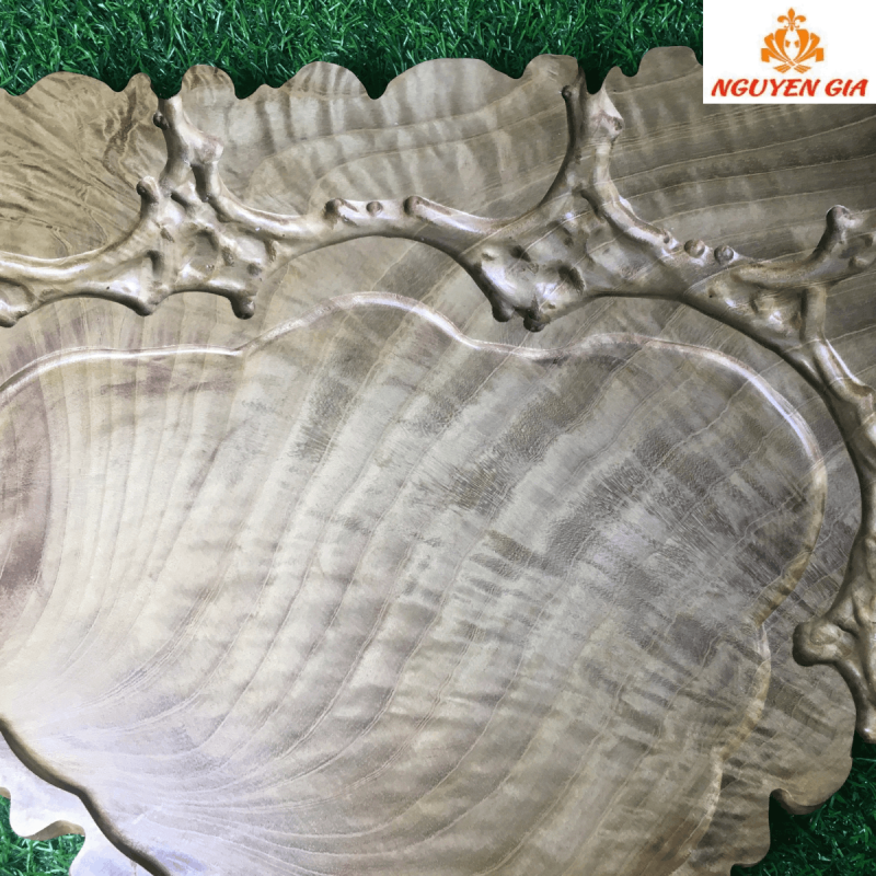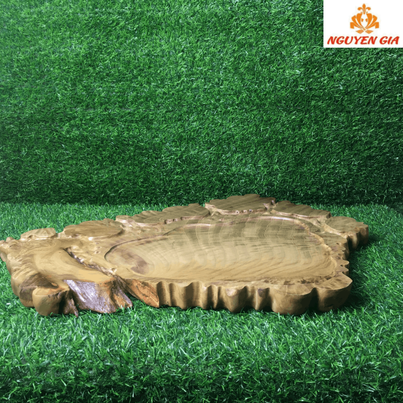 Ở giữa là phần lòng khay được tạo hình nhẹ nhàng, nổi bật trên nền vân gỗ lan tỏa đều và sáng.