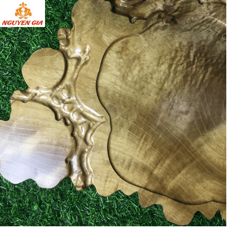 Chiếc khay được giữ nguyên theo thế gỗ tự nhiên, không cắt vuông công nghiệp.