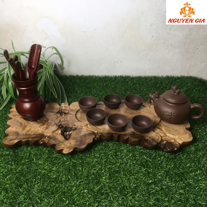 Khay trà gỗ dổi nguyên khối giúp không gian phòng trà: